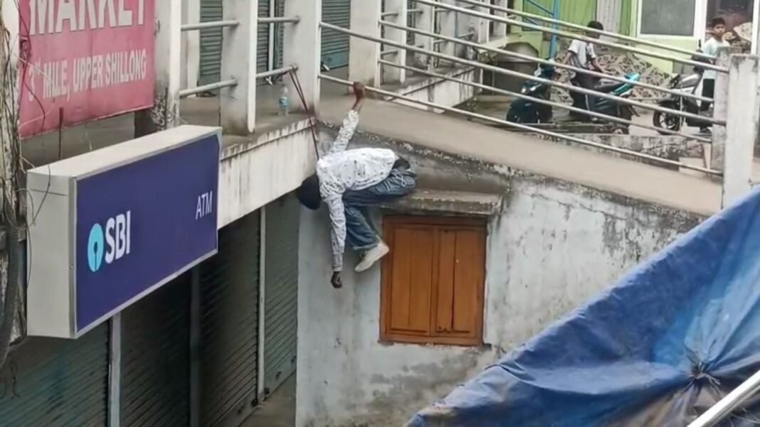 In a disturbing incident, the body of a man was found hanging near a State Bank of India ATM at Laimer in Upper Shillong on Thursday morning.