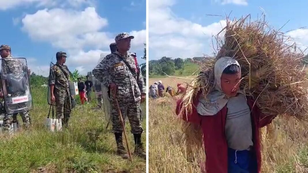 Hundreds of villagers from Lapangap came out in large numbers to harvest the ripe paddy, marking a positive turn after recent tensions in the area. They were joined by farmers and volunteers from nearby villages such as Sahsniang, Mober and others, who came to assist in the harvest as a show of solidarity.