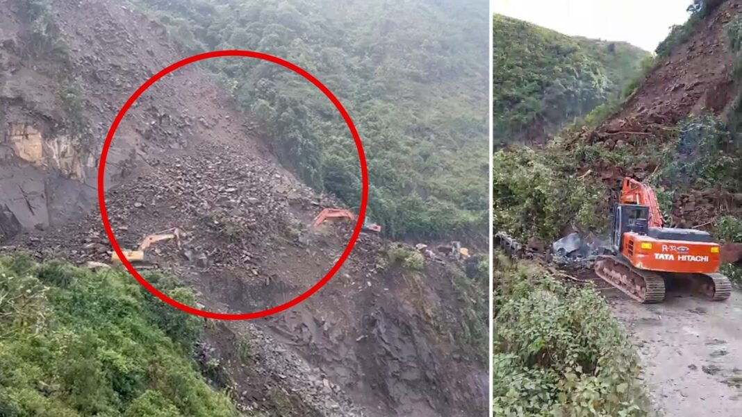The landslip was triggered by blasting work carried out by a company engaged in the ongoing two-lane road construction. Large boulders and debris fell onto the road, blocking the vital route used by commuters and tourist vehicles.