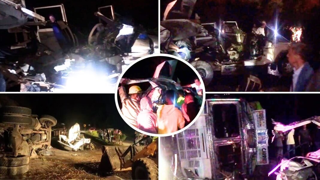 Shillong: In a tragic road traffic accident at Quinine, Ri-Bhoi, a truck (Reg. No. ML-05L-4368) travelling towards Guwahati lost control, crossed into the opposite lane, capsized, and collided with a government vehicle (Mahindra Bolero, Reg. No. ML-01-7455) belonging to the District Sports Office, Resubelpara.