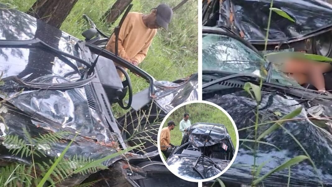 A video circulating on social media shows the front of the vehicle badly damaged and it is suspected that the car crashed into a tree inside the forest.