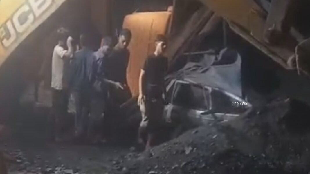 According to sources, the truck carrying coal was on its way to unload at a factory when it suddenly lost control, overturned and crashed into the Maruti car carrying the three occupants.